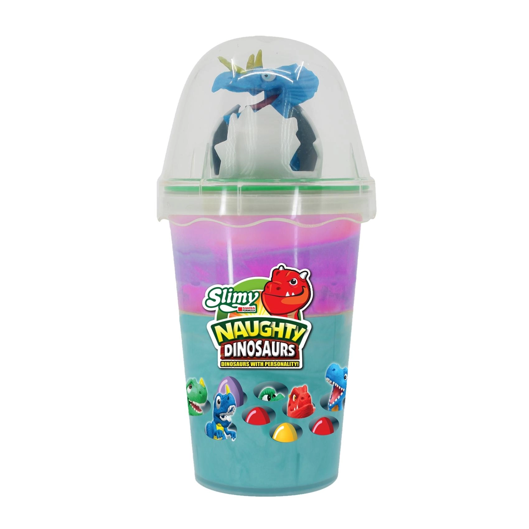 Cada vasito contiene una figura coleccionable de dinosaurio que despierta la imaginación y prolonga la diversión más allá del juego con el slime.