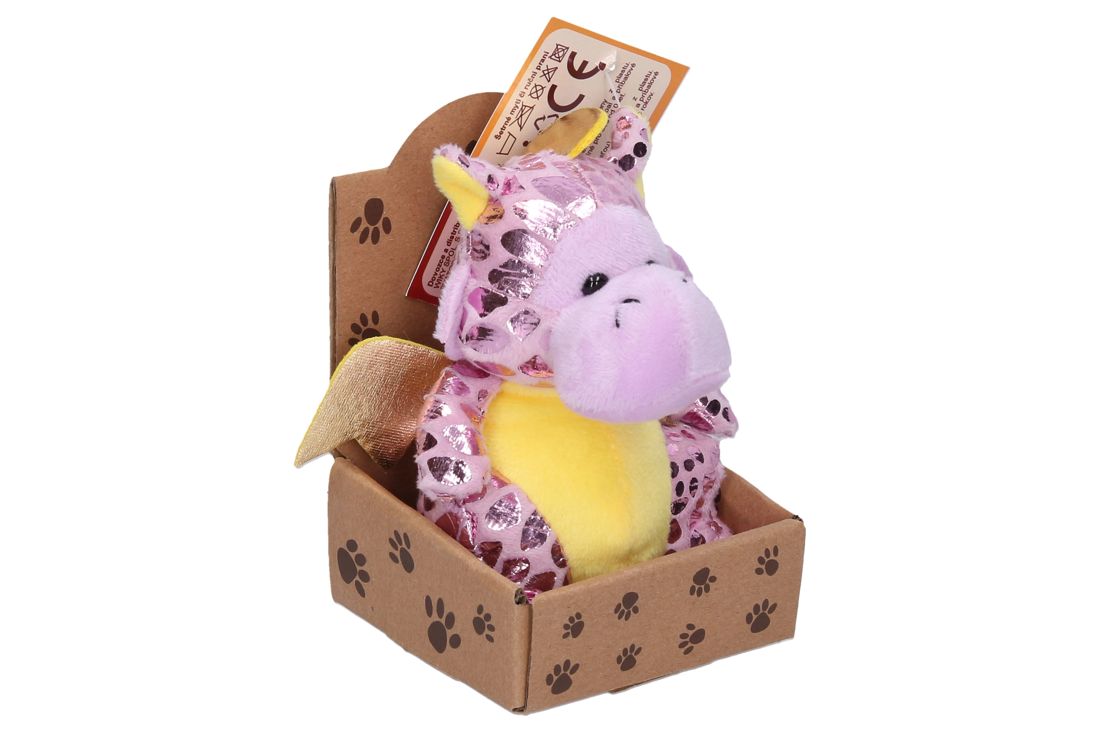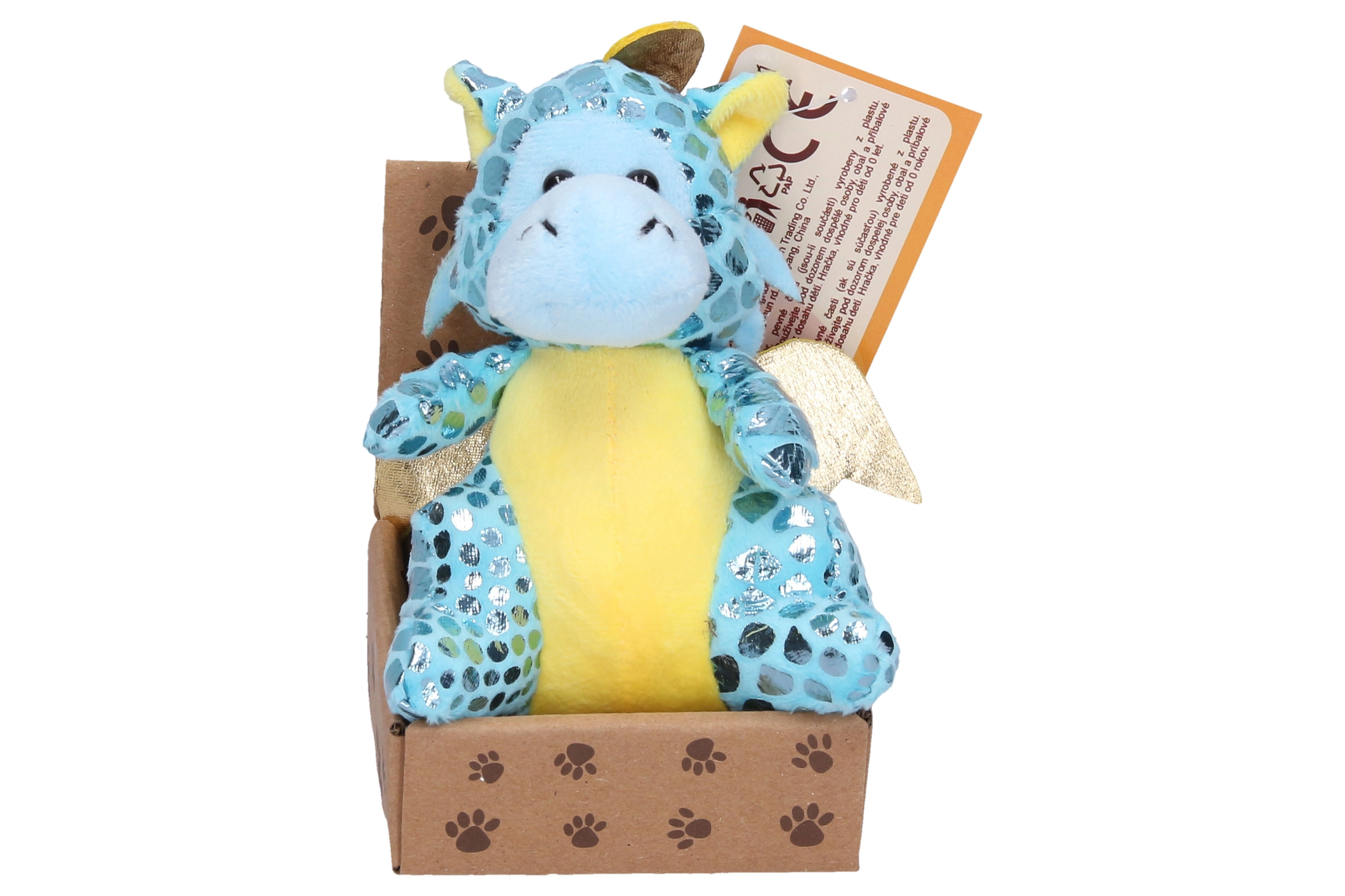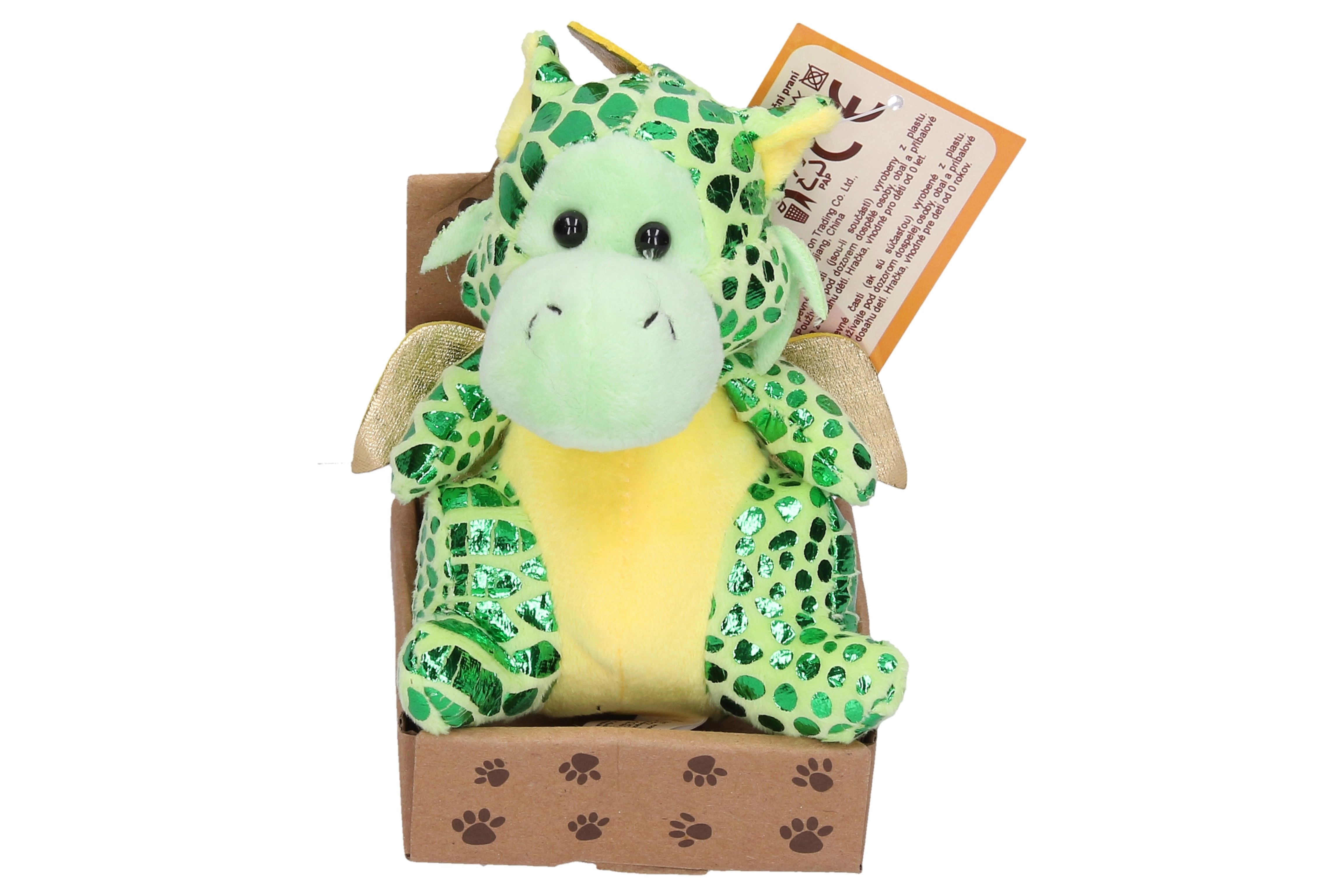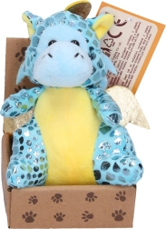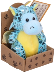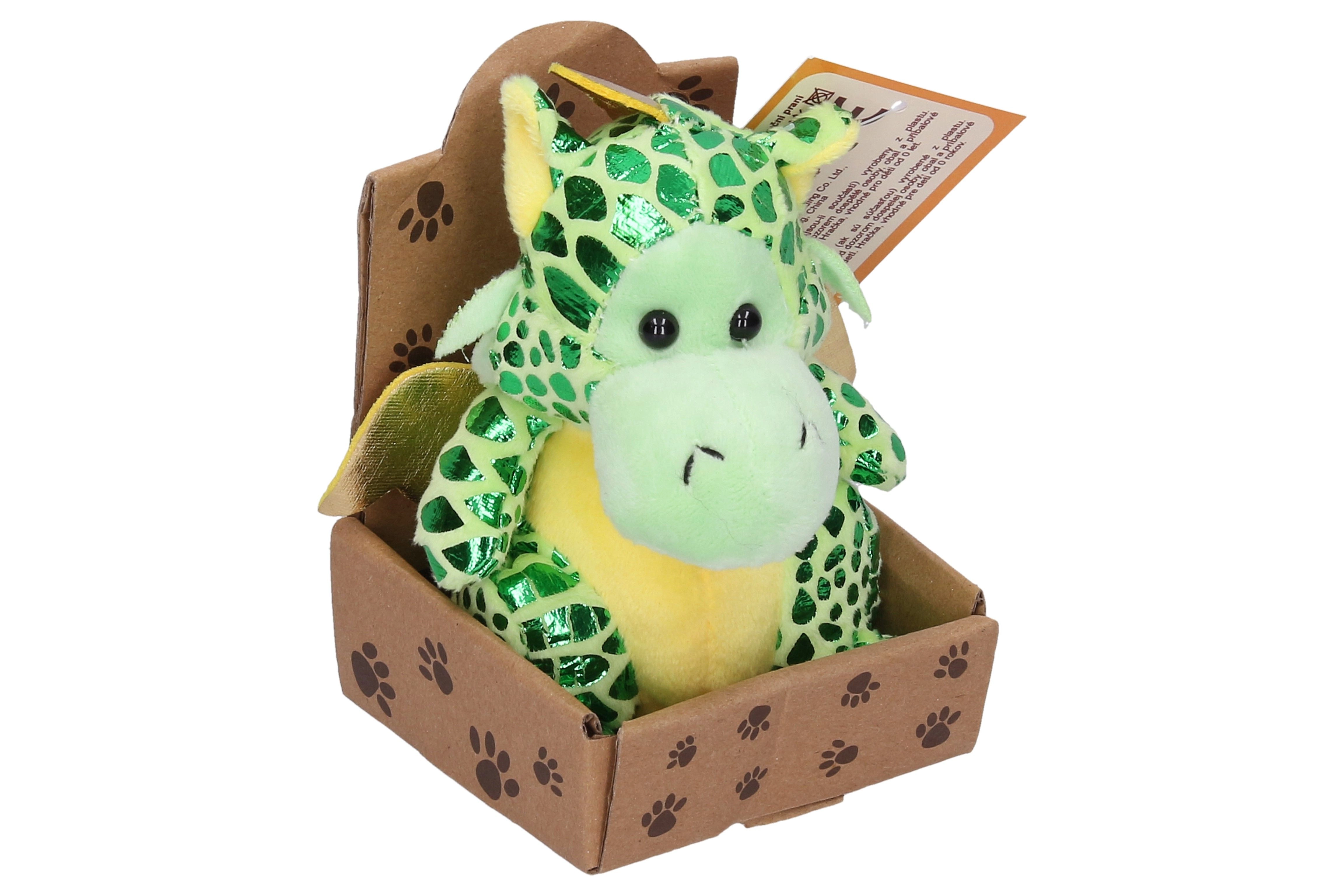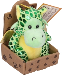 Este dragón de peluche aporta alegría con su acabado brillante y su tamaño compacto de 13 cm, que cabe fácilmente en la mochila o en una estantería. El material suave es agradable al tacto e invita a abrazarlo, mientras que sus colores intensos lo convierten en una decoración atractiva y en un compañero de viaje.