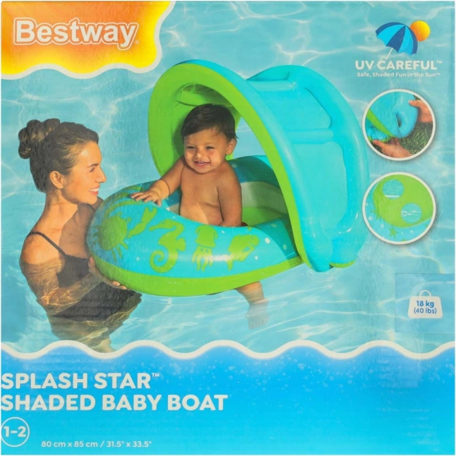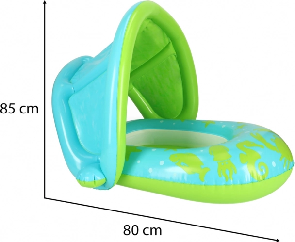 Disfruta de la diversión acuática veraniega con seguridad y tranquilidad. El sillón de natación infantil con dosel inflable desmontable protege la piel sensible del niño de los rayos solares y proporciona una sombra agradable tanto en la piscina como en el mar.