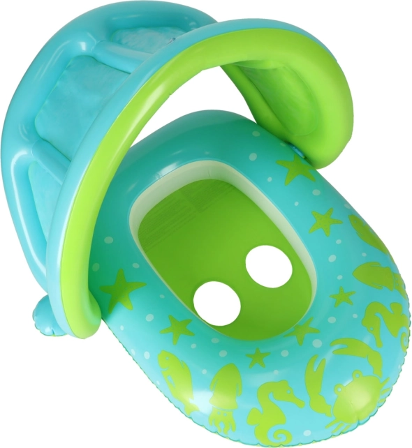 El asiento integrado con dos aberturas para las piernas garantiza una postura natural y cómoda y ayuda a mantener al niño estable sobre la superficie. El PVC resistente aguanta más de una temporada y el colorido diseño marino encantará a los pequeños al instante.