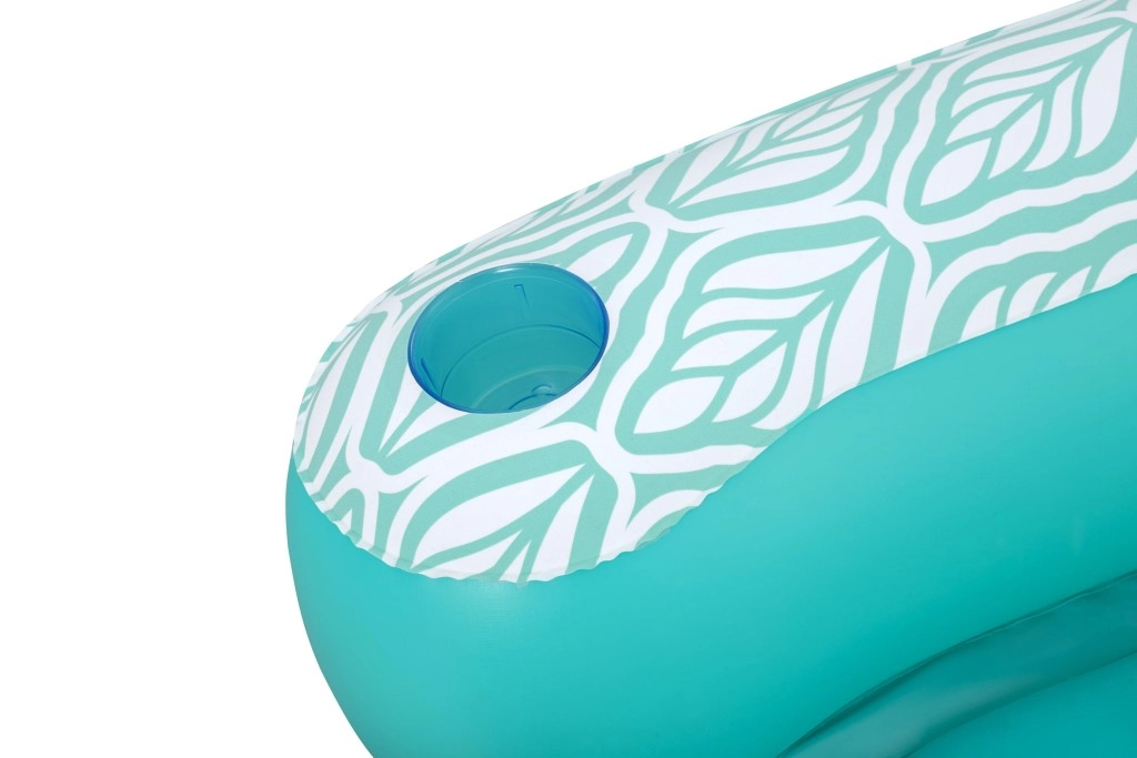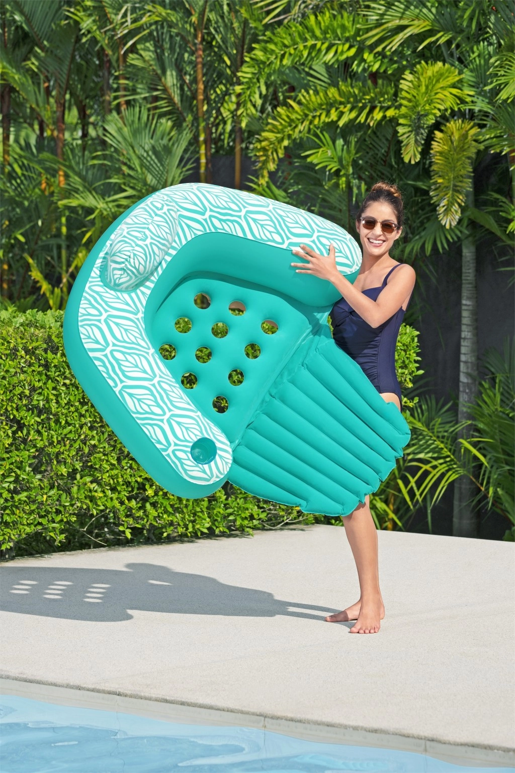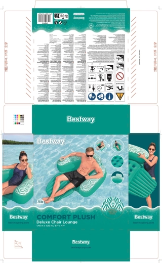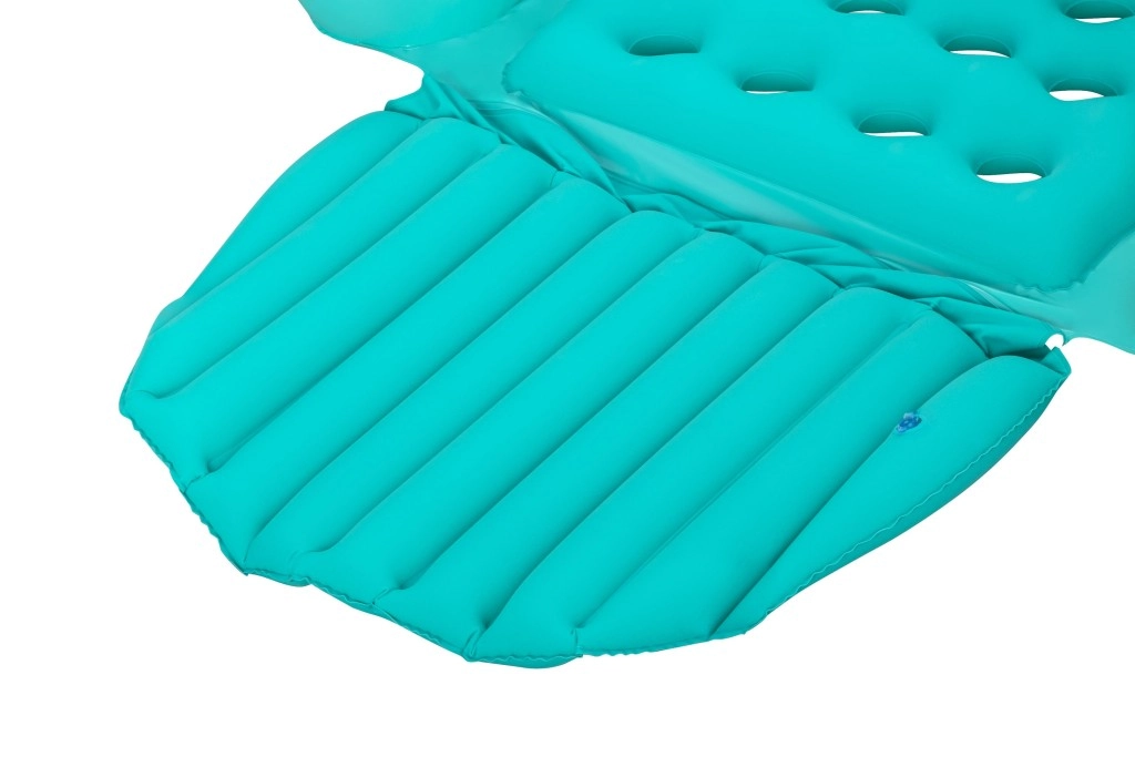 El sillón inflable Bestway Deluxe Comfort Plus es ideal para piscina, lago y mar en calma. El respaldo ergonómico con cojín integrado sostiene la espalda y el cuello, mientras que el reposapiés plegable permite elevar el asiento y elegir una postura cómoda tanto sentado como tumbado. La superficie aterciopelada, hidrorrepelente Comfort Plus es agradable al tacto y en el agua resulta aún más atractiva.