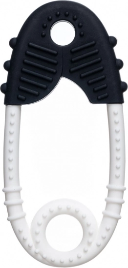 Alivia a tu bebé del picor de encías con el mordedor blanco y negro en forma de imperdible. El contraste de colores capta la atención, mientras que la suave silicona masajea delicadamente las encías y favorece la mordida natural. Gracias a la resistente combinación de plástico/silicona, el mordedor es ligero, agradable de sujetar y fácil de mantener limpio.