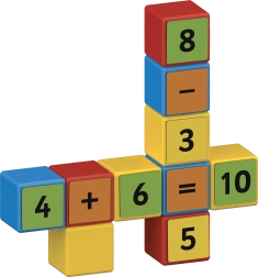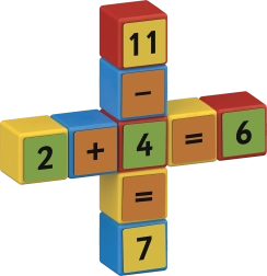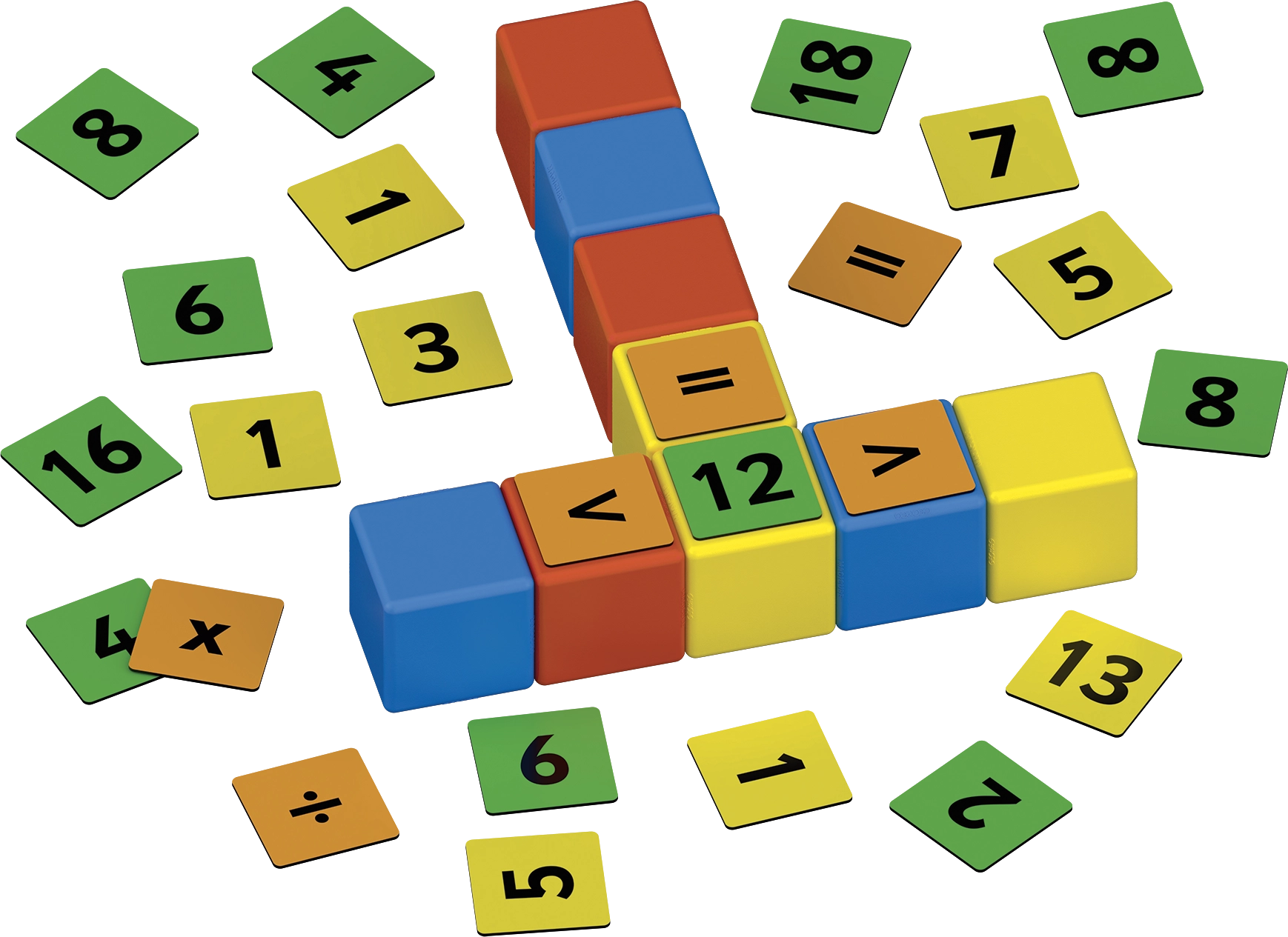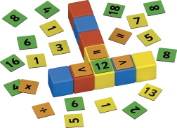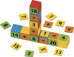 Los clips de doble cara con números y signos permiten crear operaciones sencillas y más complejas. Los niños entrenan de forma natural la suma, la resta y las bases de la multiplicación.