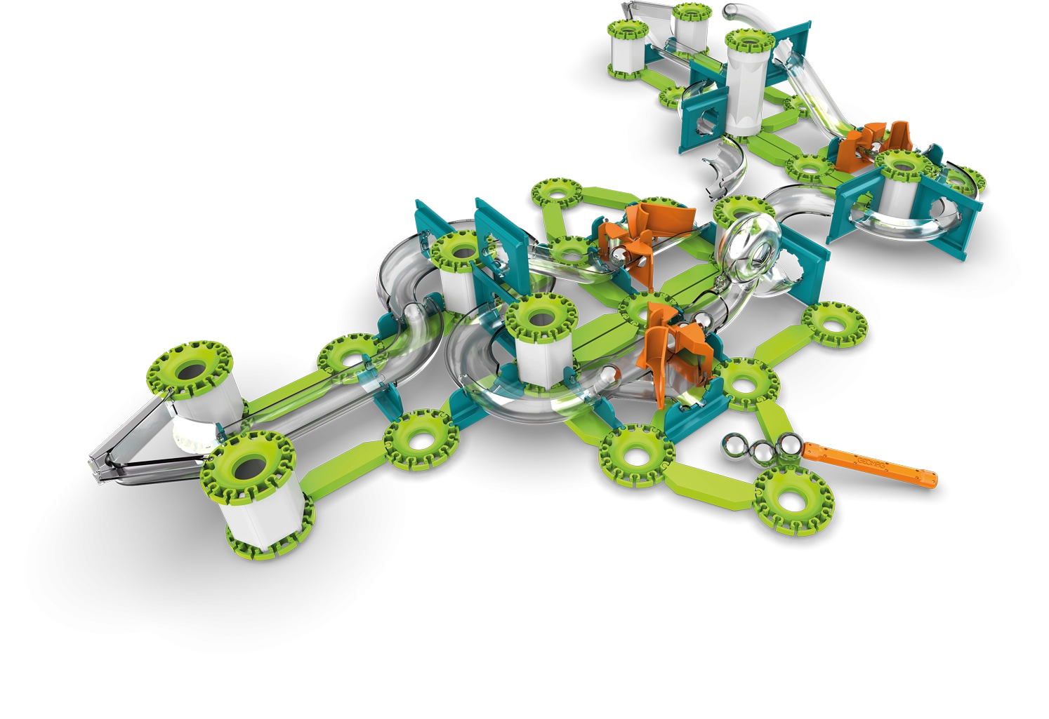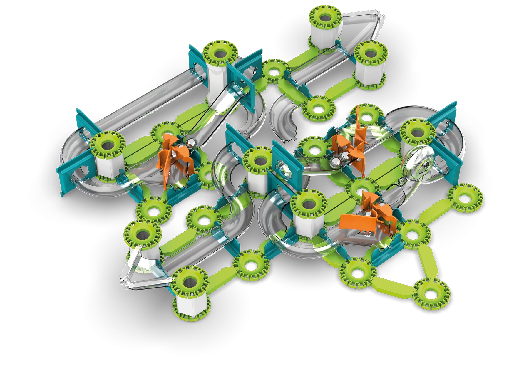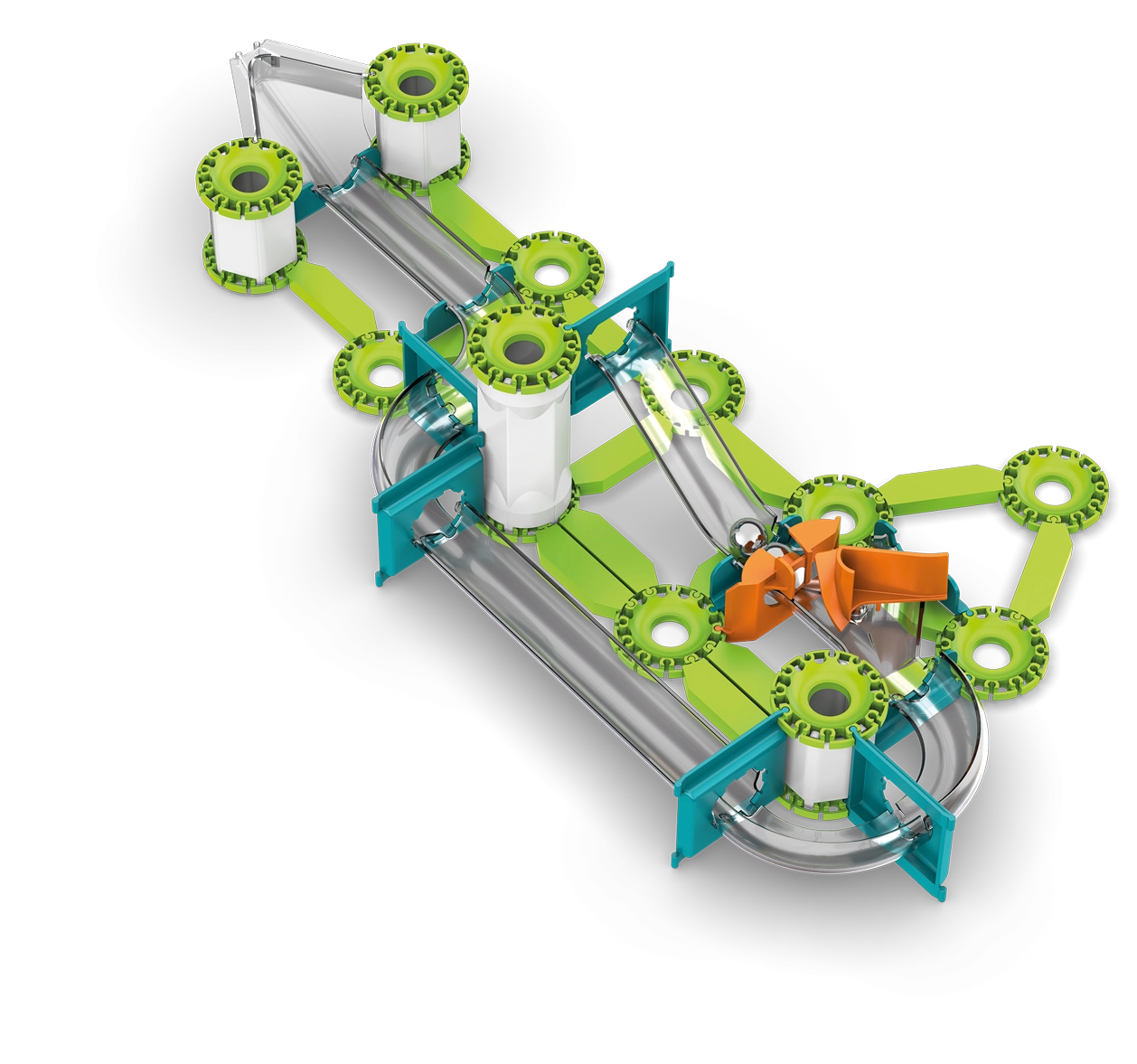 - 153 piezas que incluyen 12 canicas metálicas, 116 bloques de construcción y 25 elementos de pista.