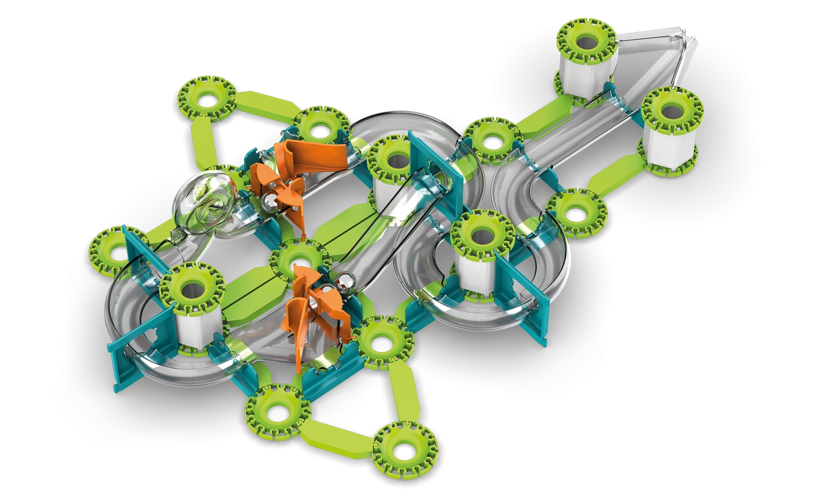 - Hasta 11 modelos de pistas para canicas metálicas: desde básicos hasta avanzados.