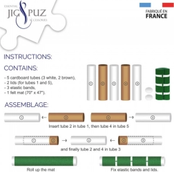 Se acabaron las mesas ocupadas y el miedo a que se desparramen las piezas. Esta alfombrilla con superficie de fieltro es ideal para cualquier amante de los puzles, desde 300 hasta 6000 piezas. Simplemente la despliegas, montas, y cuando necesites recoger, enrollas la alfombrilla con la imagen en proceso y la aseguras con las correas.