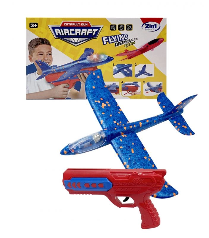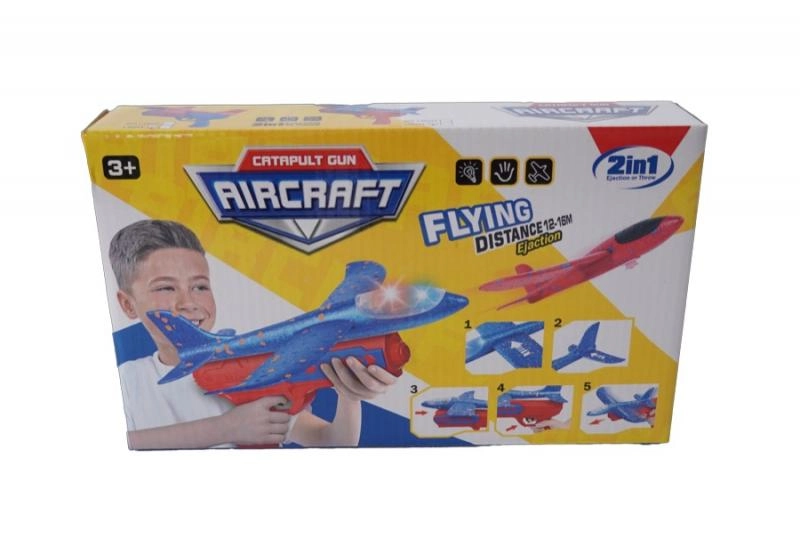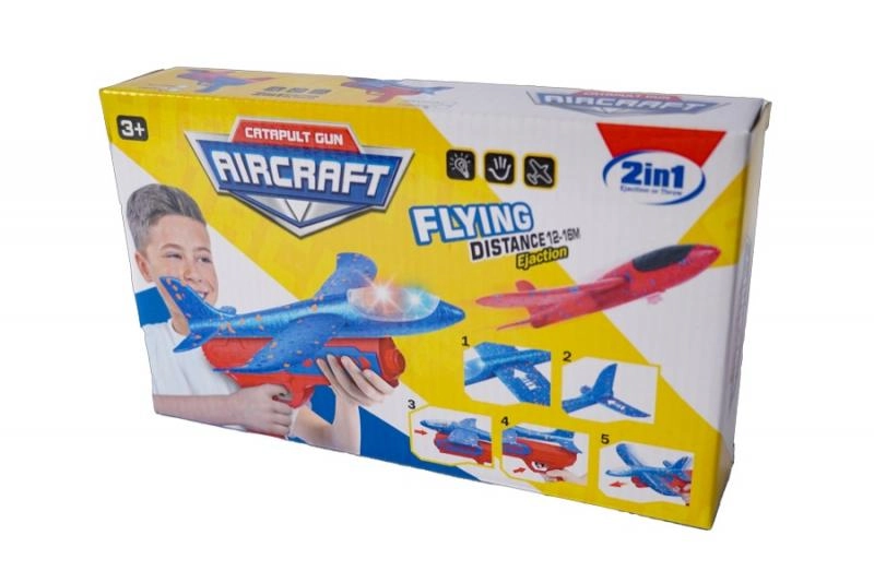 Avión de espuma con luz y una práctica pistola lanzadora que ofrece manejo sencillo y vuelos largos y estables. Gracias a la espuma ligera y resistente, el juguete es seguro para los niños y soporta pequeños golpes. La luz LED integrada destaca al atardecer y aporta un gran efecto visual al vuelo.