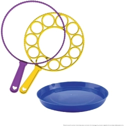 Dos aros de distintos colores permiten crear una cantidad interminable de burbujas de forma fácil y rápida.