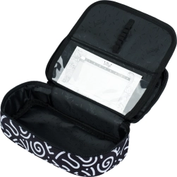 El estuche ofrece un gran compartimento con un pequeño bolsillo transparente para una etiqueta con nombre u objetos pequeños. Está diseñado para la organización perfecta de tus útiles de escritura.