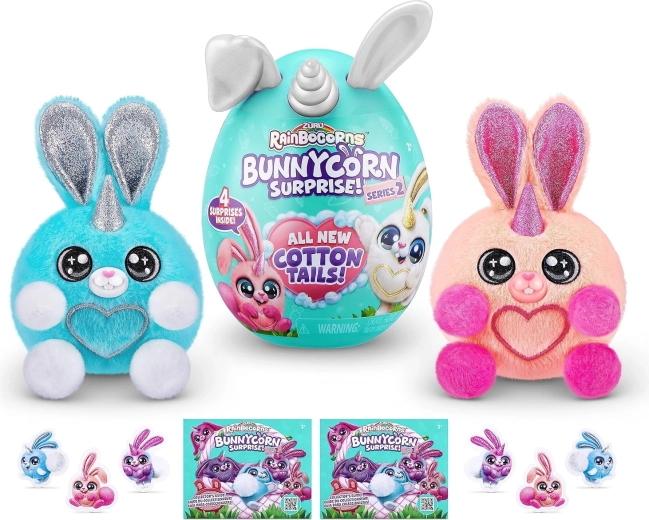 Pequeño pero mágico: el conejito Boo‑Boocorn de la línea RAINBOCORNS aporta a los niños la alegría de la sorpresa y el abrazo más suave. En cada huevo encontrarás un conejito de peluche con orejitas brillantes, cola esponjosa y otros pequeños accesorios para jugar y coleccionar.