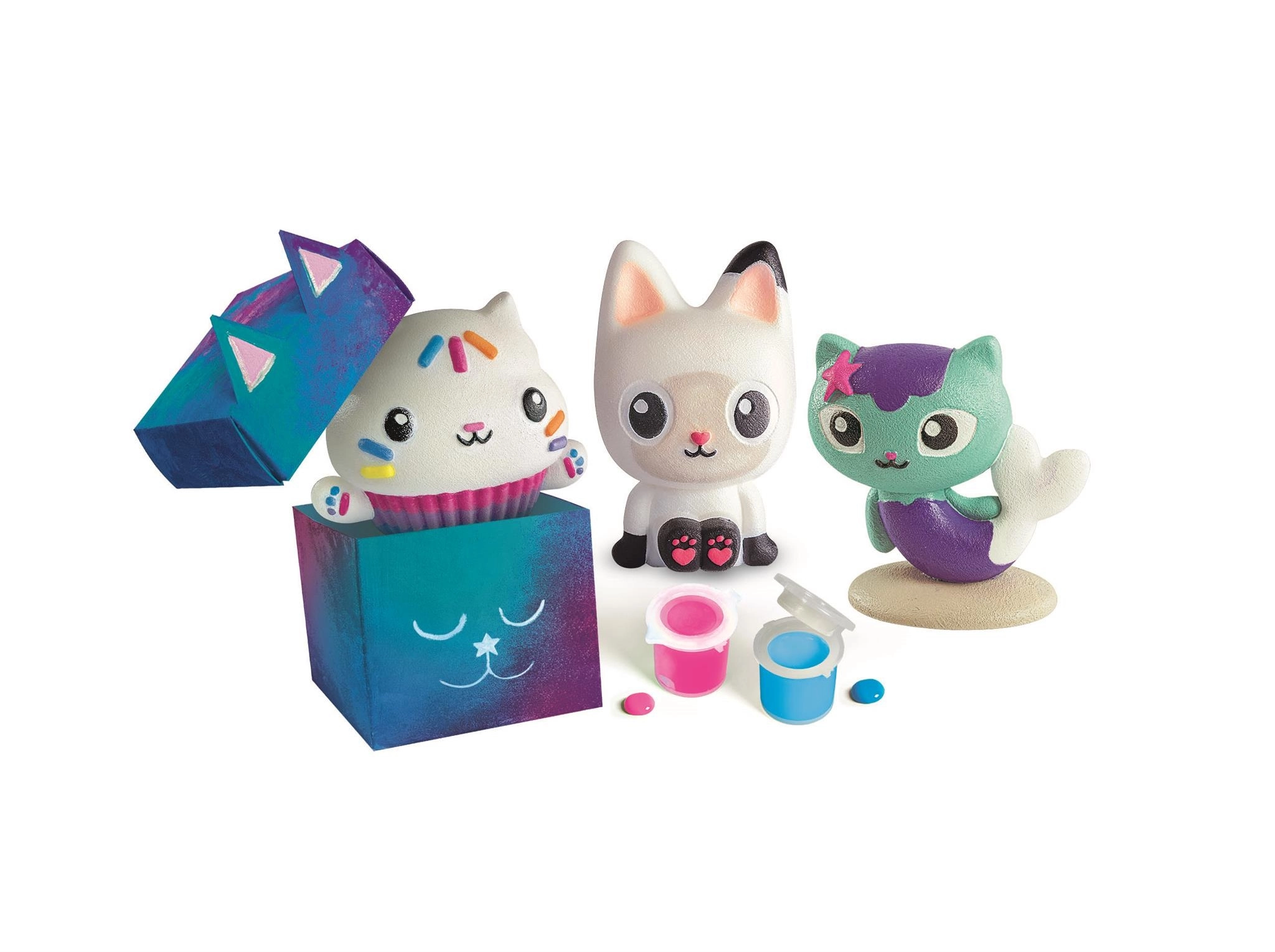 Este set creativo de la marca Clementoni es una elección ideal para niños que aman las manualidades y el mundo de La casa mágica de Gabby. En el paquete encontrarás todo lo necesario para colar, montar y pintar tres figuras de yeso diferentes. Gracias al yeso de calidad, obtendrás miniaturas precisas y detalladas que los niños decorarán fácilmente con las pinturas incluidas.