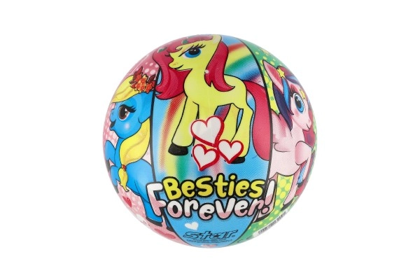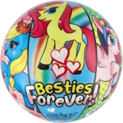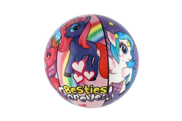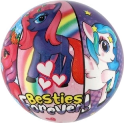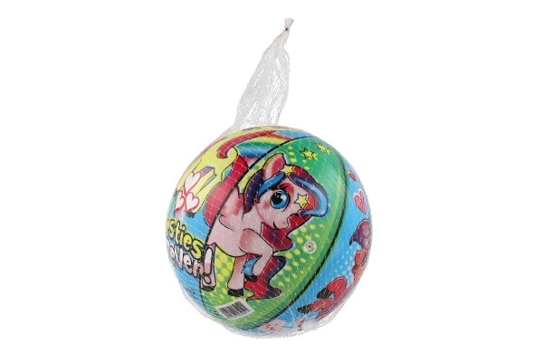 La pelota está decorada con coloridas imágenes de ponis que atraen la atención y aportan alegría a cada juego.