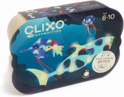 CLIXO Ocean Creatures es una ingeniosa construcción magnética para niños a partir de 6 años que combina juego y aprendizaje. Gracias a su mecanismo patentado con imanes de rotación de 360° y fijación en 24 posiciones, las creaciones son estables y seguras. El set incluye 24 piezas en 9 formas (incluyendo tentáculos y aletas) en 4 colores, algunas de las cuales brillan en la oscuridad, perfectas para motivos marinos y construcciones fantásticas.