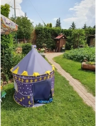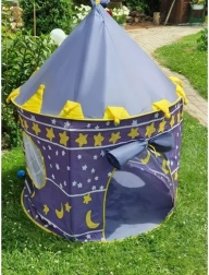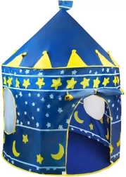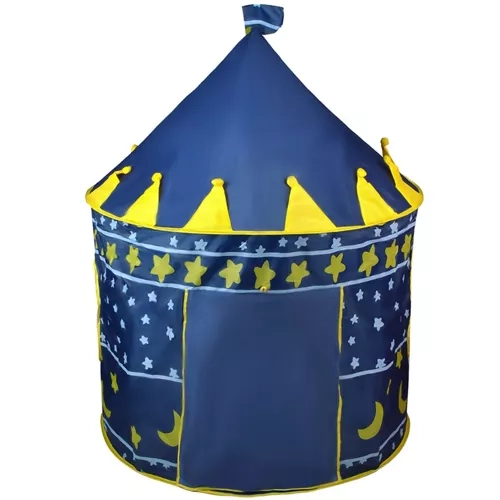 La tienda de juego infantil con forma de castillo azul fomenta el juego creativo y la autonomía. El elegante estampado de cielo nocturno con estrellas y lunas atrae las miradas y crea un rincón acogedor para leer, jugar o descansar. Su estructura es ligera pero estable, para que los niños disfruten con seguridad.