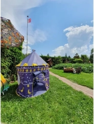 Una tienda infantil mágica con forma de castillo transforma cualquier habitación o jardín en un lugar lleno de fantasía. Gracias a su estructura ligera y a la funda práctica es fácil de transportar, se monta en 5 minutos y es apta para jugar en casa y al aire libre. El resistente poliéster, el armazón estable de PA y fibra de vidrio, las ventanas de malla y la puerta con cierre de velcro garantizan un entorno seguro y cómodo para los niños.