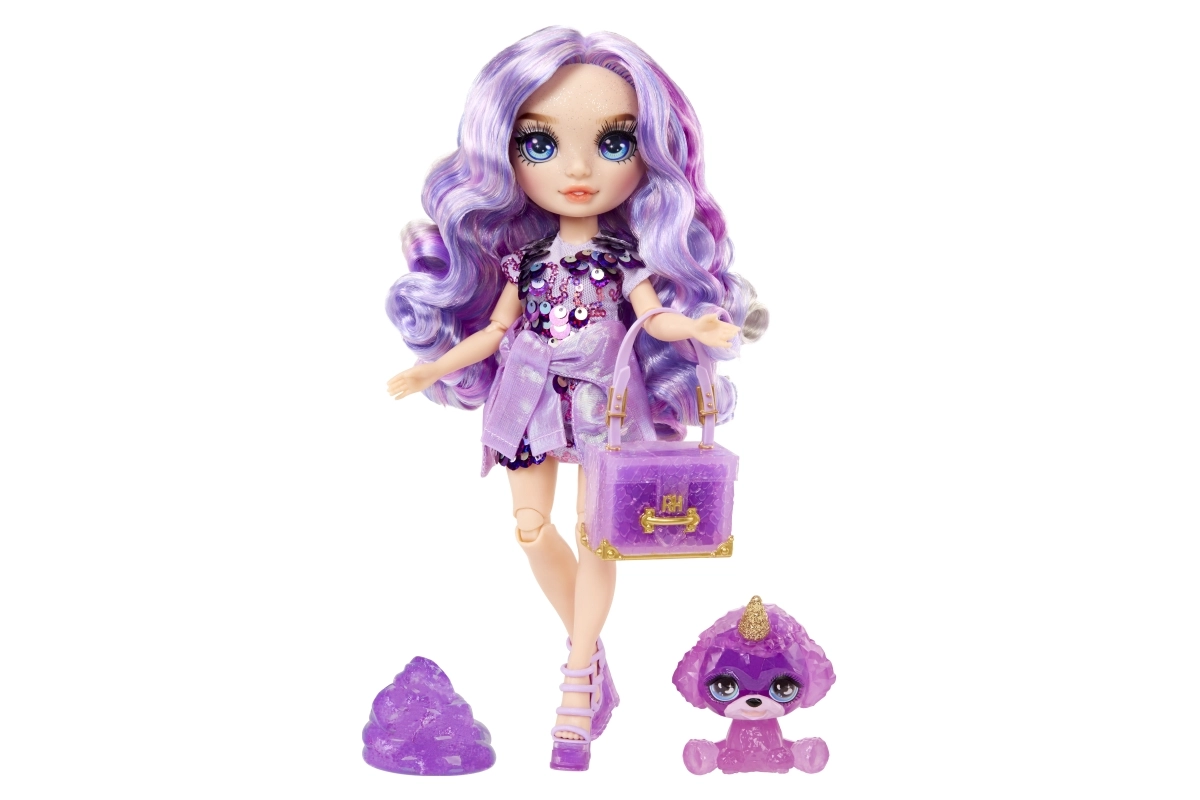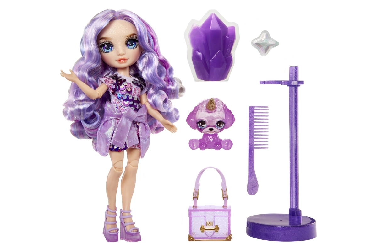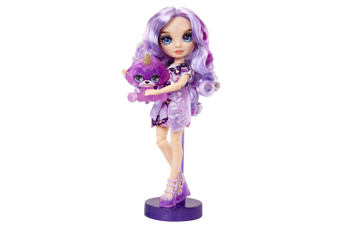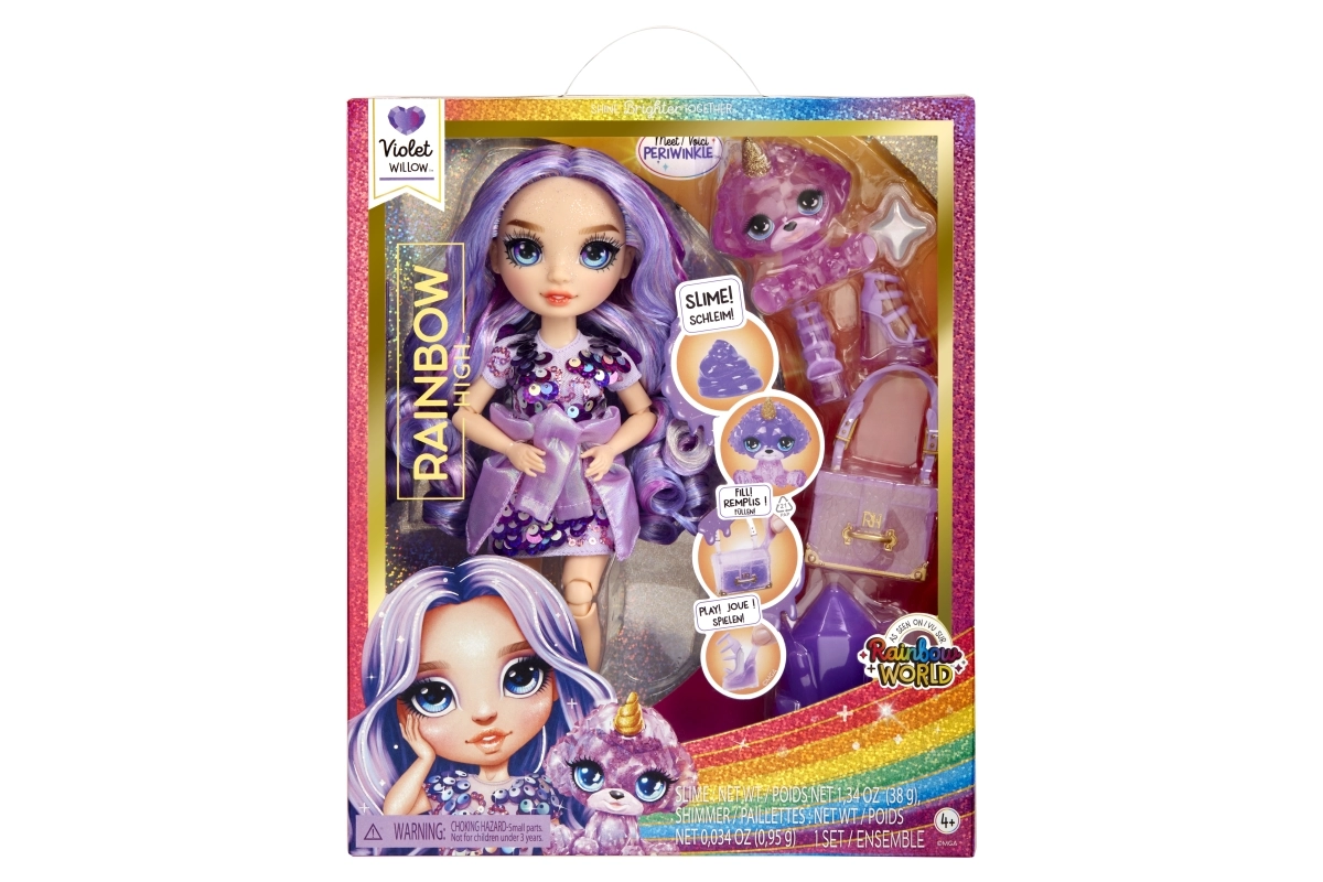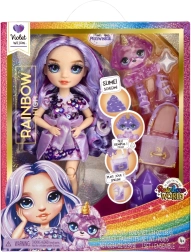 Descubre el mundo de Rainbow High con la muñeca Violet, que ofrece infinitas posibilidades de juego y creación. La muñeca es flexible y sus articulaciones permiten amplios movimientos, aportando más opciones para la creatividad. Cada muñeca tiene su mascota mágica, cuyo color puede cambiarse con slime. La muñeca viene con accesorios de moda únicos, como zapatos intercambiables y un bolso que se puede decorar con slime. Además, el set incluye un soporte para exhibir la muñeca y tenerla siempre lista para jugar.
