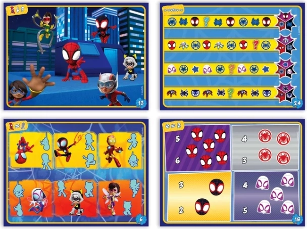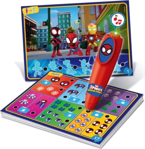 Divertido juego educativo con los héroes de MARVEL Spidey de Disney Junior que ofrece a los niños de 3 a 6 años más de 200 desafíos tipo cuestionario con un bolígrafo electrónico interactivo. Los niños aprenden colores, formas, números, cantidades y orientación espacial, mientras que el bolígrafo se ilumina y emite sonido al responder correctamente. Fomenta el aprendizaje autónomo, la concentración, la percepción y el pensamiento lógico.