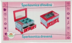 Este elegante joyero de madera combina un aspecto atractivo con una organización funcional. La tapa superior con espejo se abre fácilmente y revela compartimentos bien pensados para anillos, pendientes y pequeños accesorios. Dos cajones independientes ofrecen espacio adicional para guardar los tesoros de forma ordenada.