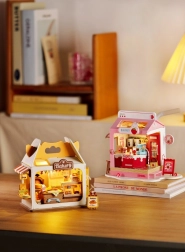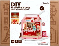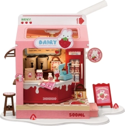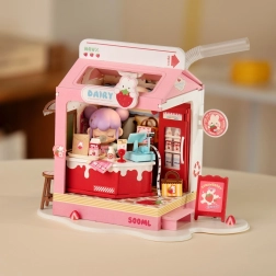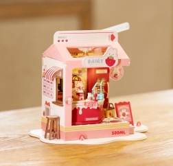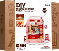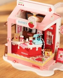 Descubre la magia del mini mundo con la casa en miniatura Bar de Leche Strawberry. Este kit creativo de Robotime cautiva por sus detalles realistas, su diseño juguetón y su agradable iluminación LED. El montaje te entretendrá y el resultado será una encantadora decoración para una estantería o el escritorio.
