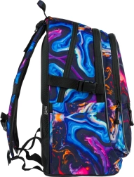 La moderna mochila escolar con un llamativo patrón marmoleado está diseñada para ofrecer comodidad y durabilidad. La espalda de forma ergonómica, el acolchado y las correas de hombro totalmente ajustables, así como las correas de pecho y de compresión laterales, garantizan un ajuste perfecto y un porte saludable durante todo el día.