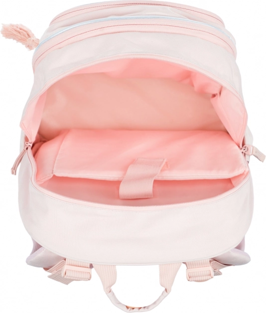 BAAGL Core Creamy es una mochila escolar con estilo y funcional, con un peso extraordinariamente bajo de 900 g y un volumen de 25 l. Tres compartimentos con cierre independiente y organizador interno, además de un bolsillo acolchado, guardan de forma segura un portátil o tableta de hasta 15", cuadernos y material escolar. Los bolsillos laterales de material resistente son ideales para una botella de agua.
