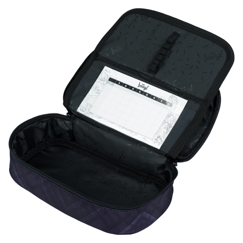 Gracias al separador abatible y al bolsillo interior con cremallera, tendrás lápices, bolígrafos, goma y pequeños objetos siempre a mano. El bolsillo para el horario ayuda a planificar el día escolar. El estuche está hecho de material reciclado, por lo que es más respetuoso con el medio ambiente.