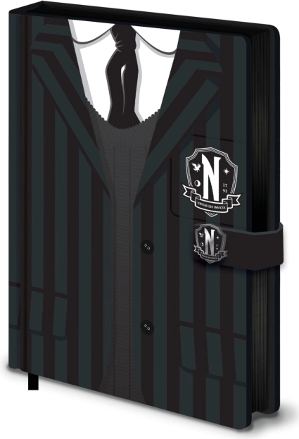 El bloc premium Wednesday es el compañero perfecto para cualquier fan de los Addams. Su diseño no solo es visualmente atractivo, sino también práctico gracias a la encuadernación en símil piel, que garantiza una larga durabilidad. Con 120 páginas rayadas, es ideal para tomar notas, ideas o planes diarios.