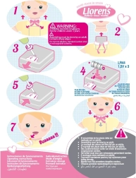 - Muñeca, chupete magnético, ropa, 3× LR44, manual