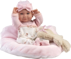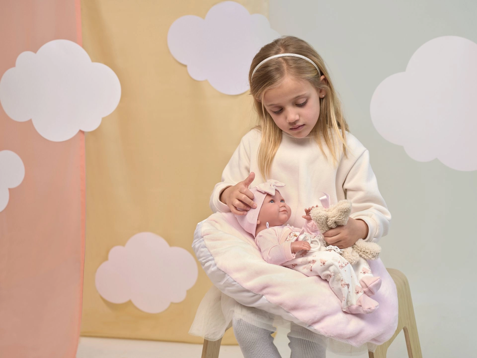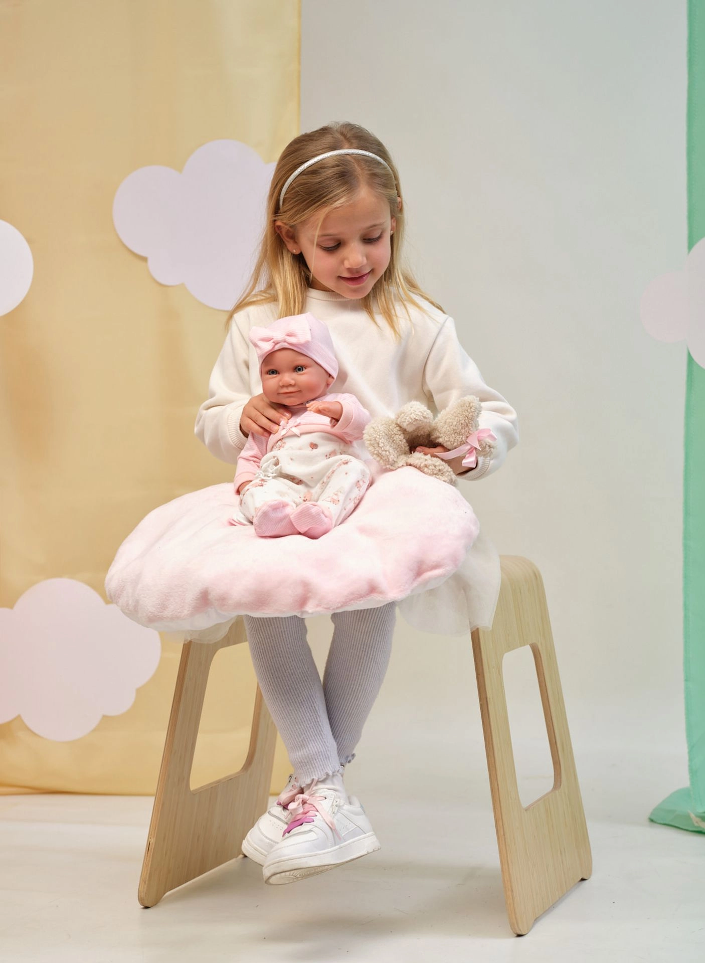 El paquete incluye un conjunto de ropa de dos piezas y un cojín, para que los niños puedan jugar a acunarla o cambiarla. La muñeca tiene brazos, piernas y cabeza móviles, lo que fomenta el desarrollo de la motricidad fina y el juego creativo. Ideal como regalo para pequeñas cuidadoras y coleccionistas de muñecas.