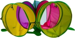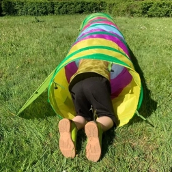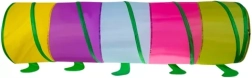 El túnel está hecho de poliéster resistente con espuma EPE y un sólido armazón de acero. El acabado multicolor estimula los sentidos y desarrolla la coordinación y el equilibrio. Ideal para uso en interiores sobre una superficie plana y estable.