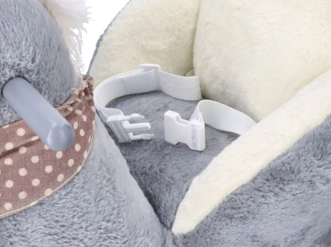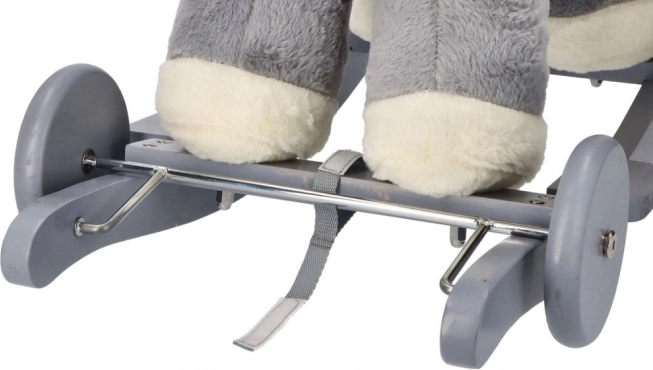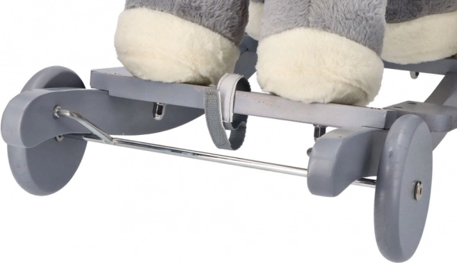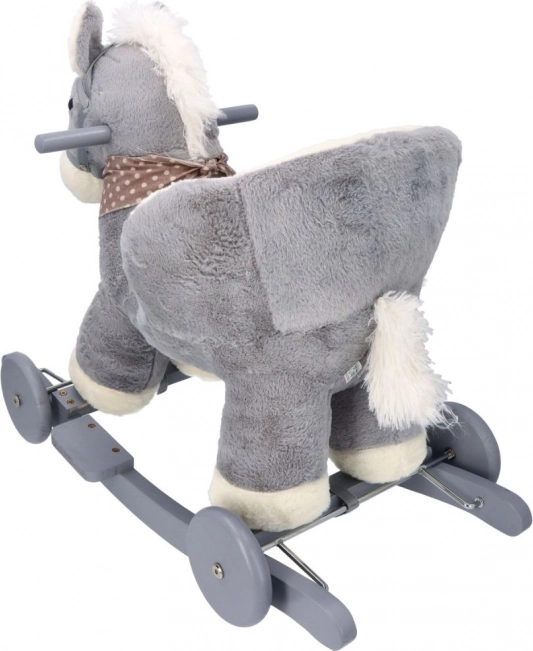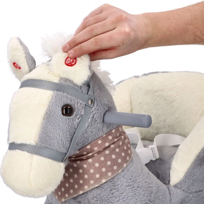 El caballito de peluche gris con asiento confortable es una gran elección para niños que adoran mecerse y dar paseos. Los patines de madera con bordes redondeados y los manillares aportan estabilidad, mientras que el suave acolchado ofrece comodidad incluso durante un juego prolongado. El compartimento integrado para pilas (bajo la barriguita del caballo) permite activar efectos de sonido o luz según el modelo.
