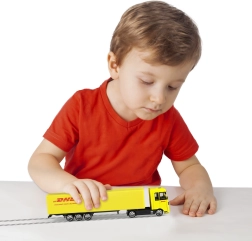 El camión con remolque DHL es ideal para todos los niños que quieran jugar a los servicios de reparto. Este modelo a escala 1:87 está fabricado con una combinación de metal y PVC, lo que garantiza su larga vida útil y resistencia durante el juego. Gracias al movimiento libre, los niños pueden disfrutar de horas de diversión sin necesidad de pilas. El modelo está provisto del llamativo logotipo de DHL, lo que convierte a este juguete en una fiel réplica de los vehículos de reparto reales.