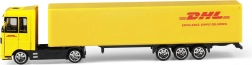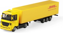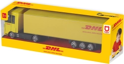 Este camión está detalladamente elaborado para imitar lo más fielmente posible un vehículo de reparto DHL real, incluyendo el llamativo color amarillo y el logotipo.