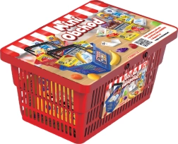 Jugar a la tienda es una de las actividades favoritas de los niños. Con esta cesta, los niños disfrutarán de mucha diversión y al mismo tiempo desarrollarán su imaginación. La cesta incluye 10 piezas de alimentos de papel y 6 piezas de fruta. Además, hay una hoja con tareas y lista de precios para más aprendizaje y diversión.