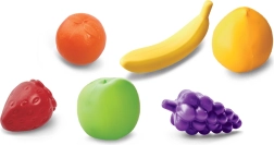 - Cesta, 10 piezas de alimentos de imitación, 6 piezas de fruta, hoja A4 con tareas