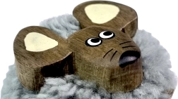 Este imán de madera con motivo de ratón combina materiales naturales y esmerada fabricación artesanal. El cuerpo luce un delicado pompón de algodón; la cabeza y las orejas están hechas de maderas exóticas de distintos colores, lo que confiere a la pieza un aspecto único. Se adhiere perfectamente a la nevera, pizarras y otras superficies metálicas, aportando al espacio un toque juguetón y acogedor.