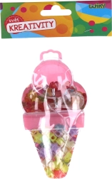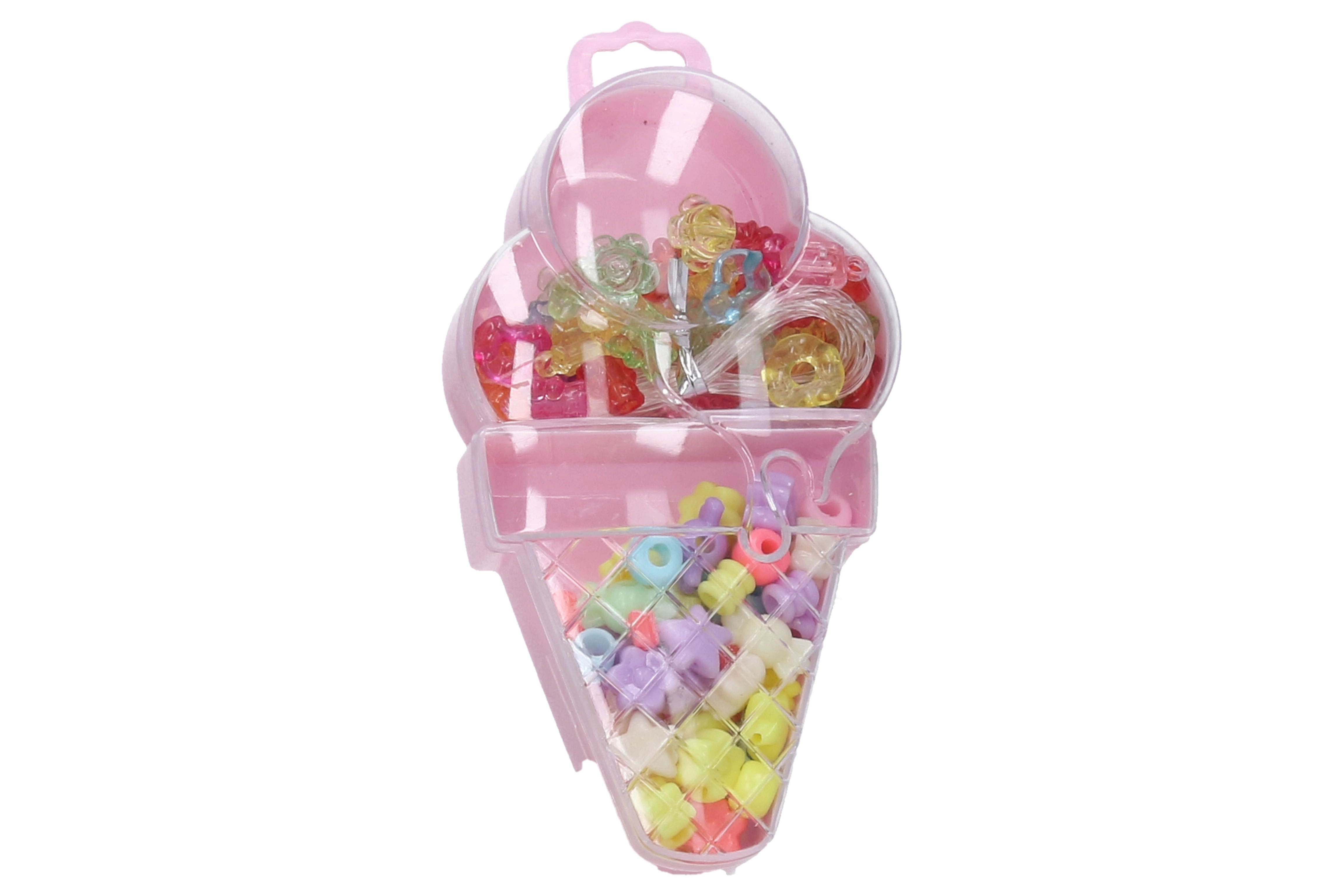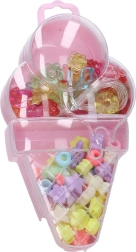 Descubra el divertido set de cuentas con forma de helado, que incluye cuentas de varios tamaños y colores junto con un cordón para ensartar fácilmente.
