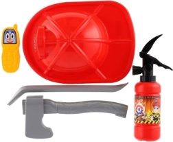 - Casco de bombero, extintor de agua, hacha, pata de cabra, radio (accesorios de plástico)