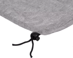 La instalación es rápida e intuitiva: pasa la goma sobre la capota y fija con los cordones con topes al armazón del carrito. En el paquete encontrarás un estuche compacto con cierre de velcro que no ocupa espacio en la cesta ni en el bolso cambiador.