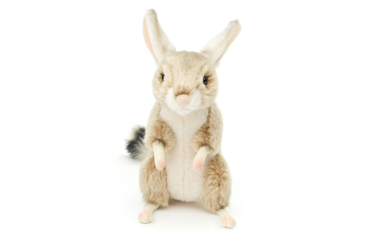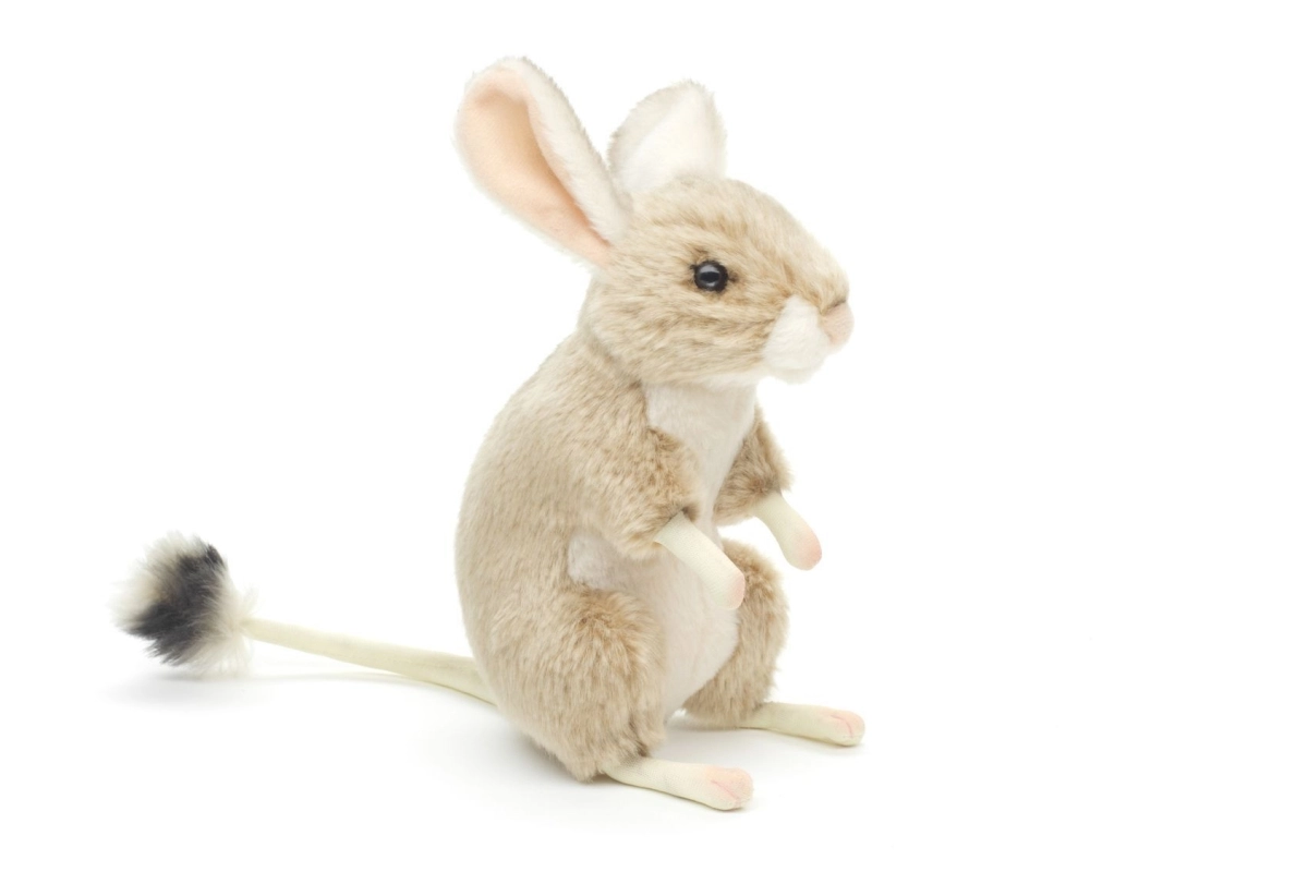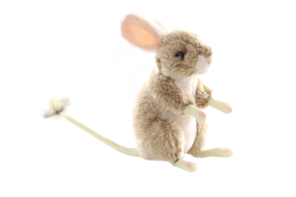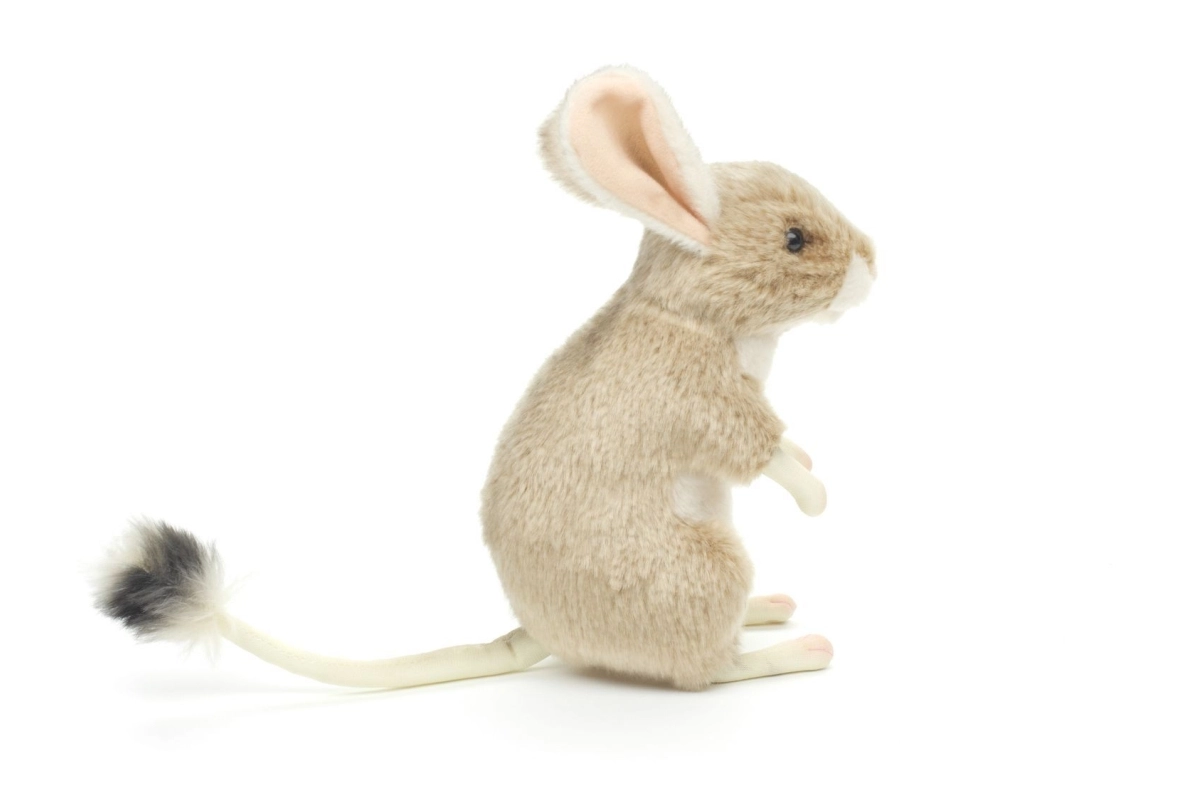 Este jerbo de peluche en tonos naturales está diseñado para un juego seguro y agradable. Su pelaje suave, sus patitas rosadas y su larga cola con borla lo convierten en un compañero excepcionalmente tierno. Gracias a su tamaño compacto de 18 cm, se adapta perfectamente a las manos de los niños y es ideal para viajes y para la cuna.