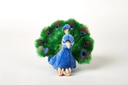 El cuerpo azul intenso y el abanico verde con “ojitos” favorecen la percepción visual y convierten al pavo en un adorno para cualquier habitación.