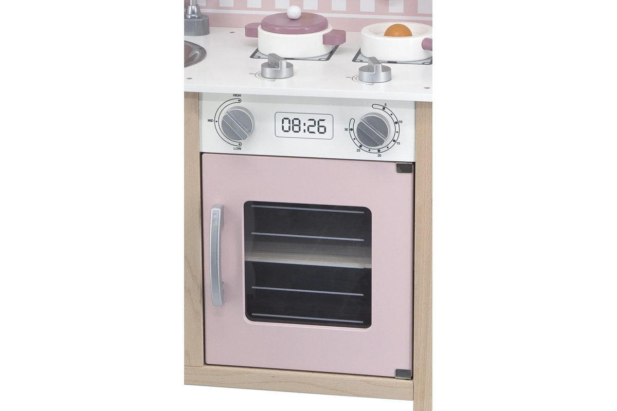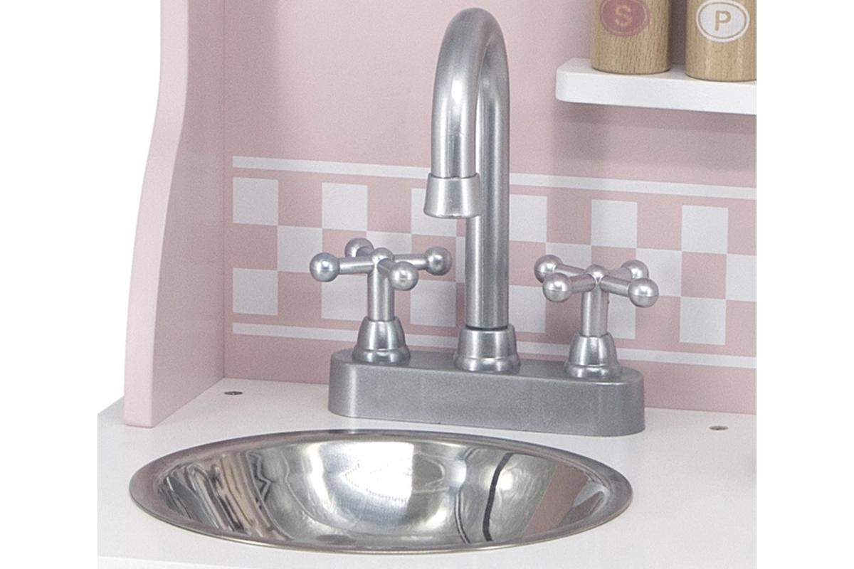 El fregadero con grifo, el horno con puerta transparente, la placa y la campana crean un entorno auténtico que motiva a los niños a un juego independiente e imaginativo.