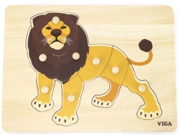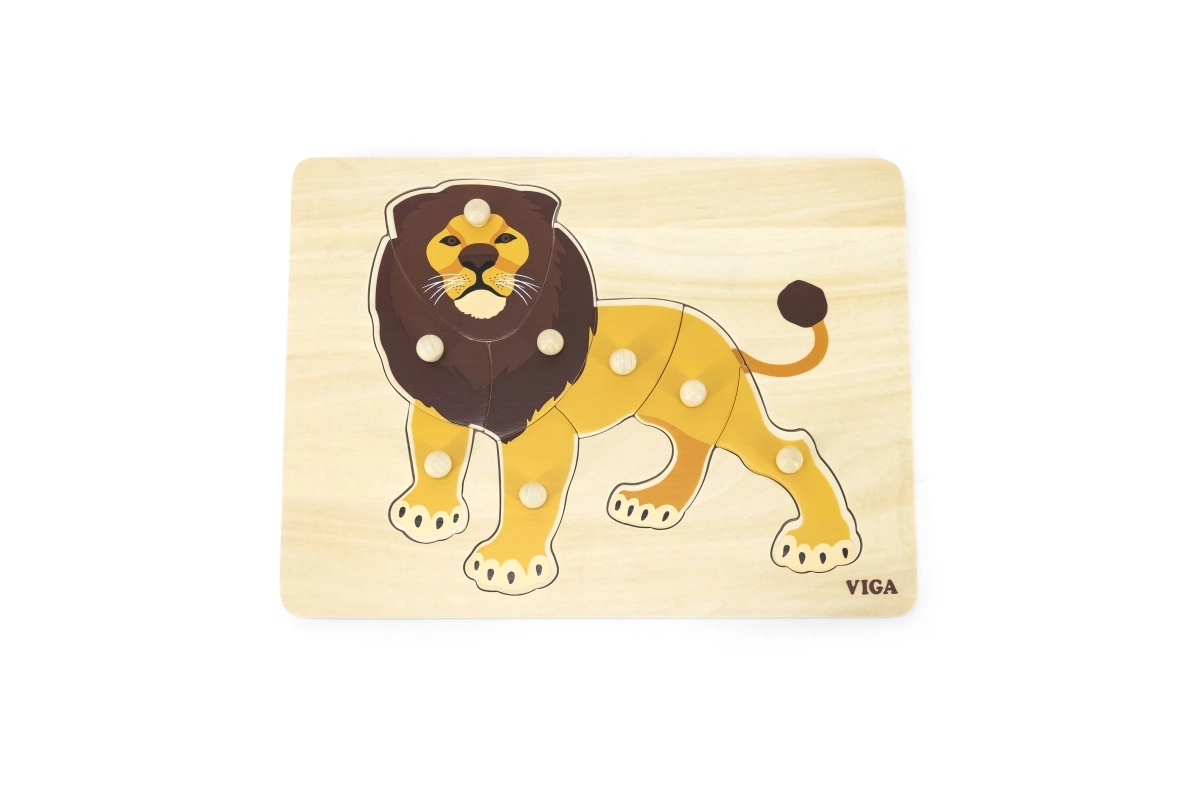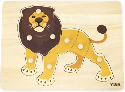 El rompecabezas de encaje de madera con un simpático león es una elección perfecta para el primer puzzle de tu niño. Gracias a los cómodos tiradores tipo botón, las piezas se agarran y colocan fácilmente en el lugar correcto, lo que desarrolla de forma natural la motricidad de los dedos y la paciencia. La ilustración colorida del león motiva a los niños al juego y al aprendizaje.