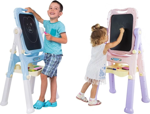 Pizarra infantil multifuncional 3+ magnética + de tiza + taburete + material de papelería