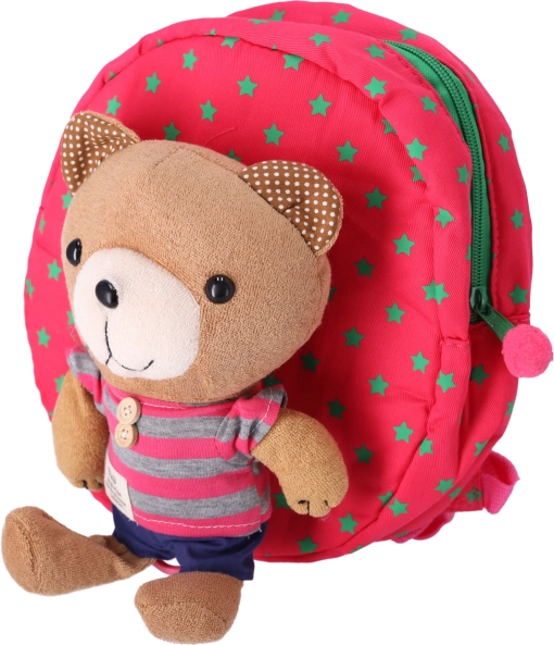 El osito de peluche en la parte frontal convierte la mochila en un compañero de viaje favorito y motiva a los niños a llevarla con gusto.