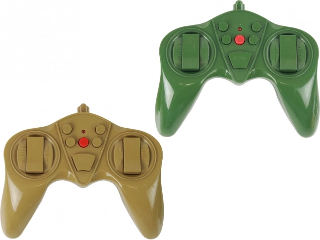 Gracias a la tecnología 2.4 GHz, ambos tanques pueden combatir simultáneamente sin interferencias. Cada tanque se alimenta con la batería incluida y en la caja también encontrarás cargadores y mandos: solo hay que colocar pilas AA en los mandos y el juego puede empezar. El combate termina cuando uno de los tanques pierde sus cuatro indicadores de vida.