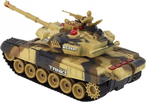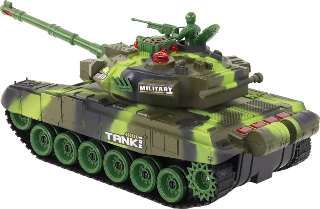 Entra en el campo de batalla con un set completo de dos tanques radiocontrolados listos para el combate. Cada modelo ofrece movimiento suave hacia adelante/atrás, giros precisos, torre giratoria de 300° e impactos por infrarrojos efectivos con registro visual de la pérdida de “vidas”. Las orugas de goma aseguran buena tracción en diferentes superficies, mientras que los efectos de sonido realistas del motor, cañón y ametralladora potencian la atmósfera del juego.