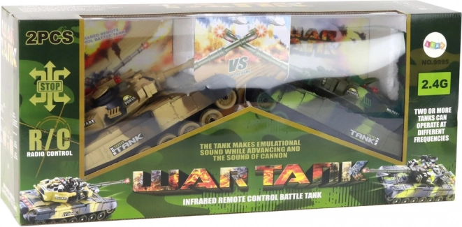 - 2× tanque, 2× mando, 2× batería 7.2 V 700 mAh, 2× cargador USB, 2× figura de tanquista, manual, embalaje original