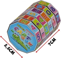 Este ingenioso y divertido rompecabezas con forma de cilindro llama la atención por sus colores vivos y su principio sencillo: gira los anillos con números y símbolos matemáticos para formar operaciones correctas. Así, los niños aprenden y refuerzan de manera natural las habilidades de cálculo, desarrollan el pensamiento lógico, la concentración y la motricidad fina: en pocas palabras, aprender jugando.