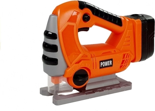 Sierra de calar infantil a batería, realista, para pequeños manitas. Al pulsar el botón se mueve la “hoja” y suena un autentico ruido de corte. Para un “trabajo” más preciso tiene luz controlada por botón, es ligera, se adapta bien a manos infantiles pequeñas y gracias a su colorido neutro recuerda a una herramienta real. Apta a partir de 3 años, segura y con certificación CE.